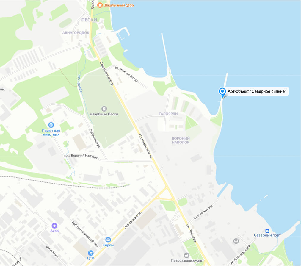 Объект расположен в парке рядом с жилым комплексом Talojarvi на берегу Онежского озера. Посмотреть на карте